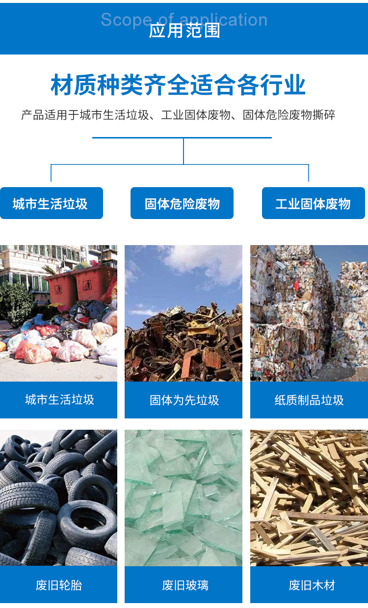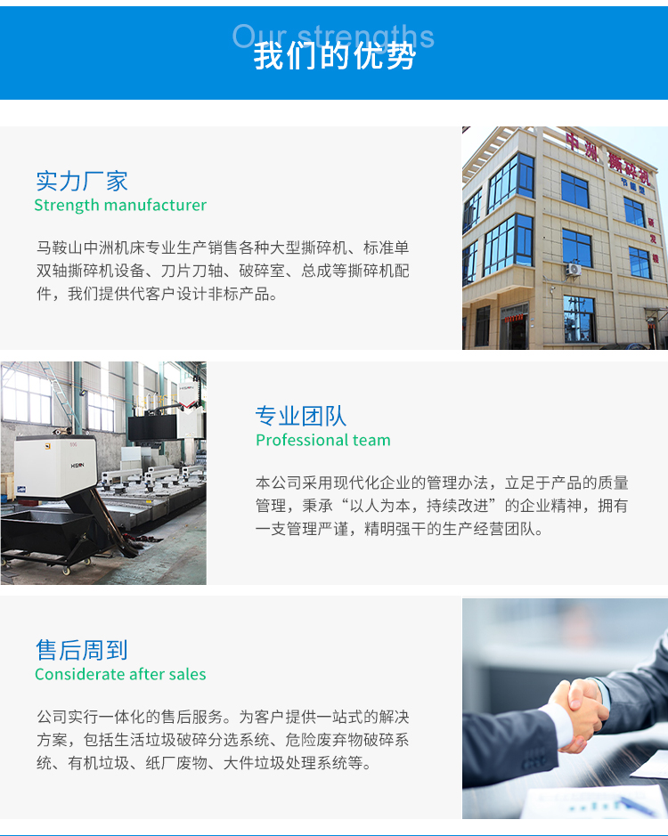 大型双轴撕碎机由电机、硬齿面减速机、旋转刀轴、进口的动刀、定刀、机架、机座、箱体、工 作平台等主要结构组成。双轴撕碎机的主要功能是通过切割,撕裂和挤压大容量材料以及不便于通过双轴撕碎机运输的大直径鼓材料来减少材料。大型双轴撕碎机不仅提高了生产能力和破碎效率,而且扩大了应用范围。大型双轴破碎机产品在利用各种破碎机的优点的基础上,充分利用冲击,剪切和相互冲击。研磨和加工方法如磨削。